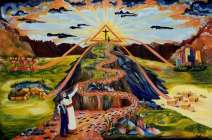 Questo cammino possiamo vederlo illustrato nel dipinto che si trova nella Casa Comboni a Bangui ed è opera di Cecilia Maraci, Suora alcantarina.