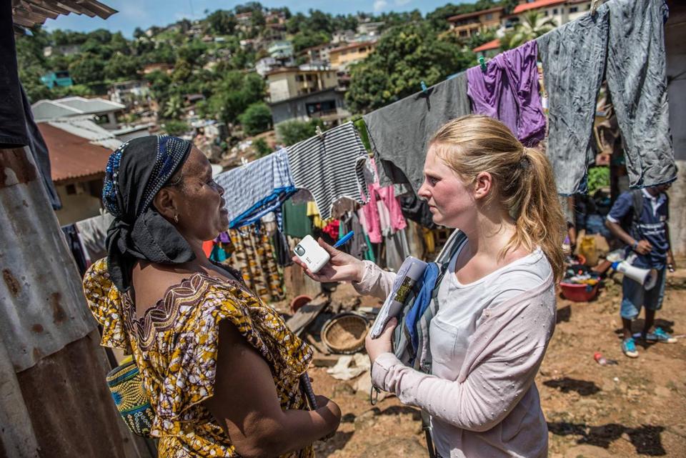 I went with our photographer to Tengeh Town, an area in Freetown. We met up with local people volunteering as Oxfam community health workers and followed them around. They are giving up their time and putting themselves at further risk to try to save their communities. One of them, a woman named Mary, told me her friend lost 10 of her family members from the same house.