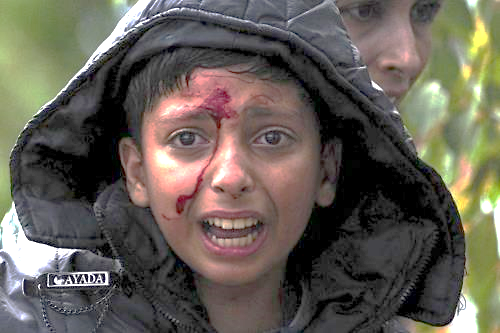 Ho visto altri bambini piangere così, e ricordo in quale occasione: nel terremoto. Il terremoto, per i bambini, è un tradimento della Terra. Tu ti fidi della Terra come della madre, se la madre ti tradisce ti dà di volta il cervello. Se ci fosse uno strumento qui, a fotografare il cervello di questi bambini, vedrebbe ciò che dalla foto risulta chiaro: hanno il cervello stravolto. Non sanno dove vanno, non sanno cosa sono gli scudi, cosa sono i giubbetti antiproiettile, perché alcuni uomini sono armati, perché alcuni vogliono passare e altri li vogliono fermare, a bastonate. Non capiscono perché mai loro, i bambini, sono andati via da casa, e se vanno verso un’altra casa, e quale, e dove.