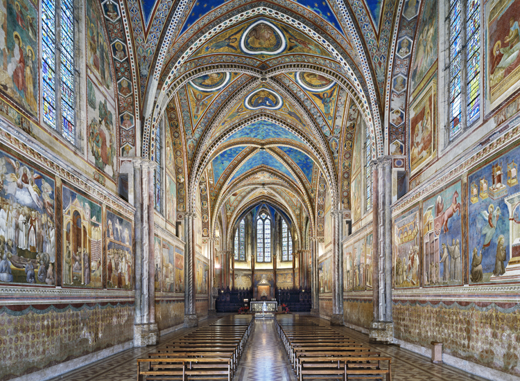 Le opere di Giotto, realizzate da lui personalmente e dai suoi “compagni” con il suo diretto progetto e controllo, furono certo moltissime, dal centro al sud al nord d’Italia; quelle a noi arrivate sono però relativamente poche; ancora meno sono quelle per le quali possiamo indicare con qualche attendibilità le date di esecuzione. È sorprendente constatare che delle opere dell’artista più importante per il formarsi della pittura italiana abbiamo così poche notizie certe. Non ci sono opinioni unanimi neppure su quella che si ritiene nel mondo la sua opera più famosa, gli affreschi nella Basilica superiore di San Francesco ad Assisi. Soltanto pochi studiosi, echeggiando vecchie opinioni del secolo scorso, pensano addirittura che Giotto non vi abbia proprio lavorato, ma assai più solido appare il giudizio che si tratti di una sua personale concezione, eseguita sia direttamente sia con il concorso di molti altri maestri.