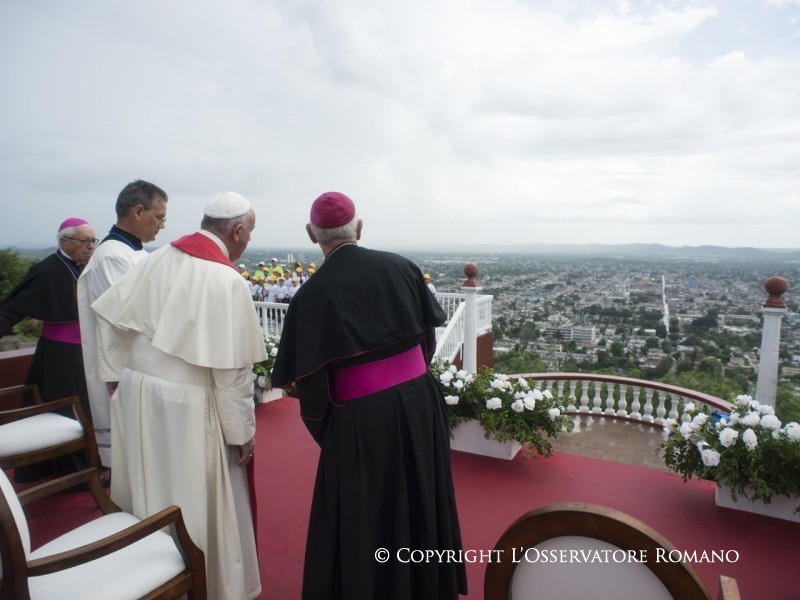 Nel pomeriggio, prima di partire alla volta di Santiago de Cuba, Papa Francesco ha raggiunto in auto la “Loma de la Cruz”, un promontorio dal quale si ammira tutta l’isola di Cuba, dove si è soffermato in preghiera davanti alla croce e ha benedetto la città di Holguín.