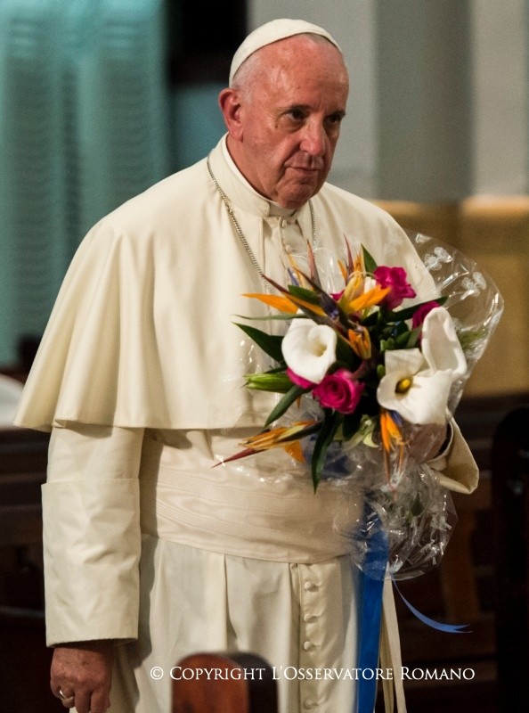 Davanti alla statuetta della “Virgen de la Caridad” il Papa ha recita la “Preghiera della Virgen” insieme ai Vescovi cubani, lasciando poi in dono alla Madonna un vaso d’argento con fiori.
