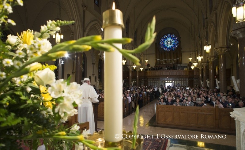 Raggiunta in auto la Cattedrale di St. Patrick a New York per la recita dei Vespri con i sacerdoti, i religiosi e le religiose, il Papa si è dapprima raccolto in preghiera con i sacerdoti anziani nella Cappella del Santissimo Sacramento. Quindi, nel corso della celebrazione dei Vespri, il Santo Padre ha pronunciato l’omelia che riportiamo di seguito: