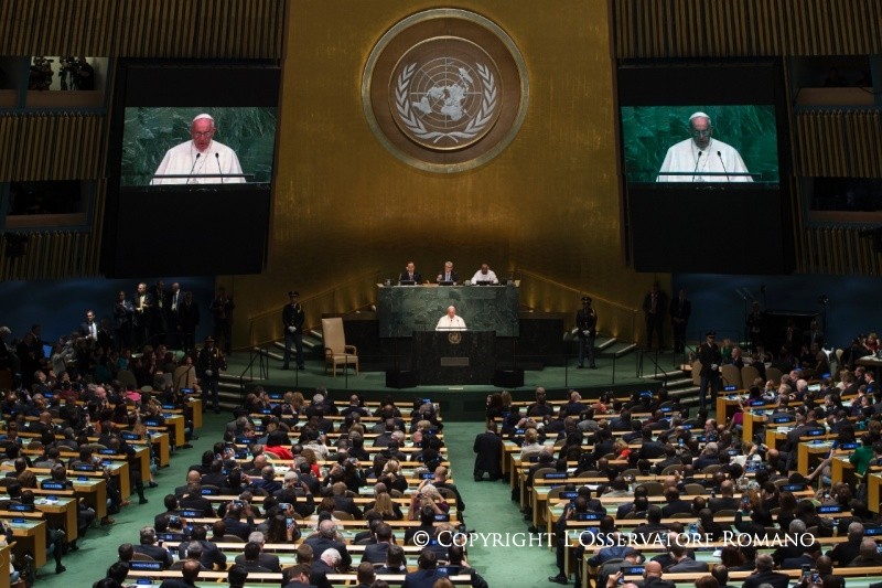 Qui, alla presenza di numerosi Capi di Stato e di Governo, introdotto dagli indirizzi di omaggio del Presidente della 70ma Assemblea Generale Mogens Lykketoft e dal Segretario Generale Ban Ki-moon, Papa Francesco ha rivolto ai Rappresentanti delle Nazioni il discorso che riportiamo di seguito: