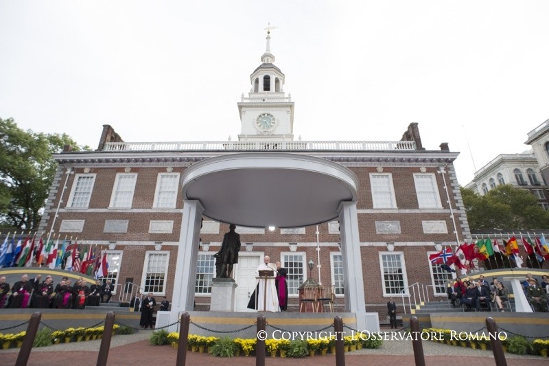 Nel pomeriggio, lasciato il Seminario S. Carlo Borromeo, Papa Francesco si è recato in auto all’Independence National Historical Park di Philadelphia.