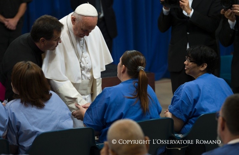 Dopo gli indirizzi di saluto del Commissioner of Prisons e dell’Arcivescovo di Philadelphia, Papa Francesco ha rivolto ai presenti il discorso che riportiamo di seguito: