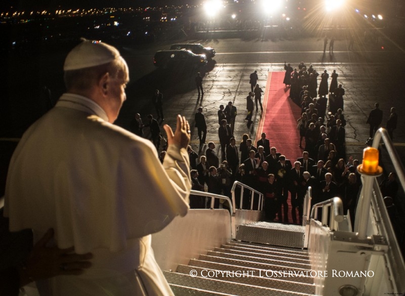 All’aeroporto internazionale di Philadelphia, il Santo Padre Francesco si è congedato questa sera dagli Stati Uniti, al termine del Suo 10° Viaggio Apostolico. Con il Vice-Presidente degli USA erano presenti Autorità civili ed ecclesiastiche e una rappresentanza di fedeli. Dopo gli onori militari e il saluto delle Delegazioni, l’aereo – un B777 dell’American Airlines – con a bordo il Papa che partiva alla volta di Roma è decollato verso le 19.45 locali.