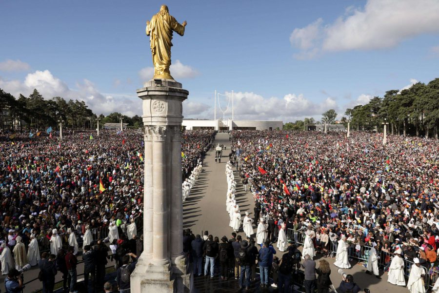 Una marea umana, fatta da fedeli che pregano e intonano canti religiosi, è in attesa da ore nel santuario portoghese di Fatima, per festeggiare con papa Francesco il centenario dell’apparizione della Vergine Maria ai tre pastorelli. Molti fedeli sono arrivati a piedi a Fatima da diverse regioni del Portogallo per incontrare il Pontefice nello storico viaggio apostolico: alcuni hanno percorso in ginocchio gli ultimi metri fino alla Cappella delle Apparizioni per pregare dinanzi alla statua di Nostra Signora di Fatima.