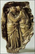 Lo scultore più vicino a Paolo VI fu Eugenio Scorzelli, figlio di un pittore napoletano, autodidatta, che si fa conoscere alla Biennale di Venezia del 1942. Dopo un primo approccio naturalistico volge verso modi espressionistici. A partire dagli anni Sessanta si dedica all’arte sacra. Paolo VI gli procura uno studio nella Città del Vaticano. Segue con attenzione il Concilio Vaticano II fissando in disegni e medaglie gli eventi più significativi e i ritratti dei protagonisti. Molto importanti la porta Vita di Maria per la chiesa di Santa Maria sopra Minerva, e La porta della preghiera, per la basilica di San Pietro a Roma, che nei quattro pannelli illustra quattro preghiere: il Pater Noster di Gesù, il Benedictus di Zaccaria, il Magnificat di Maria, il Nunc dimittis di Simeone. In numerose scene di questi pannelli è presente Maria. Il frammento riprodotto qui accanto riguarda l’incontro di Maria con Elisabetta ed è sufficiente per comprendere e ammirare come l’artista sappia esprimere nella sobria gestualità i sentimenti delle persone. Scorzelli è noto anche per il pastorale con il Crocifisso preparato per Paolo VI, che i successori hanno adottato nelle loro peregrinazioni in tutto il mondo. Paolo VI quando vide questo pastorale esclamò: «È forte, carica di espressività. È una fionda tesa al cielo».