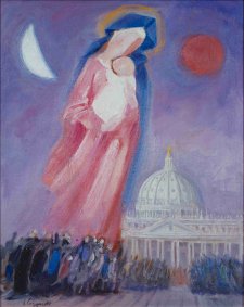 Giovanni Battista Montini, a Milano come arcivescovo, e poi a Roma come Pontefice, era in rapporto di amicizia con numerosi artisti, credenti e non credenti, di cui incoraggiava la creazione artistica nel rispetto più assoluto dell’autonomia dell’arte. Non per nulla volle integrare una “Galleria di Arte religiosa moderna” nei Musei Vaticani, ben distinguendo la “religiosità dell’arte” dall’”arte sacra”, finalizzata alla liturgia. Tra questi artisti molti si sono confrontati con il tema di Maria nei modi più diversi; ricordo alcuni tra i più significativi.
