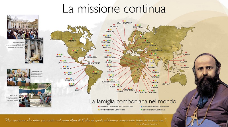 Una riflessione sul carisma comboniano nella storia ci rivela che il nostro è un carisma nato nella crisi () e che nelle difficoltà mostra la sua vitalità. Gli eventi dolorosi della nostra storia ci hanno fatto approdare a nuove configurazioni del carisma: la morte prematura del Fondatore ci ha portati alla trasformazione in congregazione religiosa; da questa trasformazione si è avuta la configurazione nelle due congregazioni; dall’espulsione massiva dal Sudan (1964) siamo arrivati all’apertura a una Africa più ampia e inclusiva di popoli e culture; dall’Africa, quale missione primigenia dell’Istituto, ci siamo aperti all’America e poi all’Asia; dalla riscoperta del Fondatore e dal rinnovamento conciliare siamo arrivati alla congregazione riunificata e abbiamo ritrovato unità e vitalità apostolica.