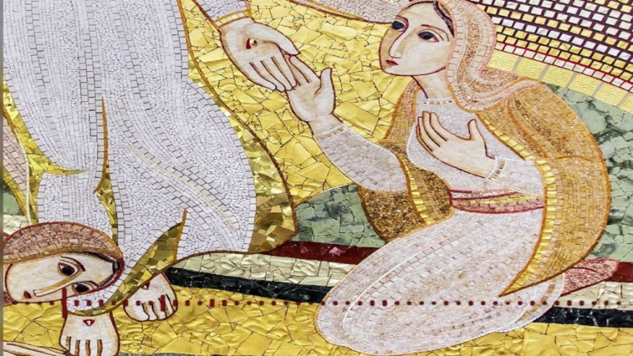 Finalmente! Verrebbe voglia di dire. Ma chi sa in quel ritardo ci doveva essere anche tanto pudore. Forse la chiesa nascente rappresentata dalle due Marie prima di cadergli davanti nel gesto dell’adorazione aveva voluto aspettare di proposito che Gesù riprendesse davvero le vesti. Non quelle che aveva momentaneamente deposto prima della lavanda. Ma quelle veramente inconsutili del suo corpo glorioso.