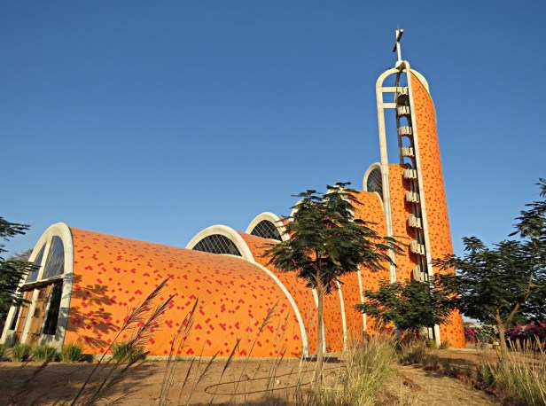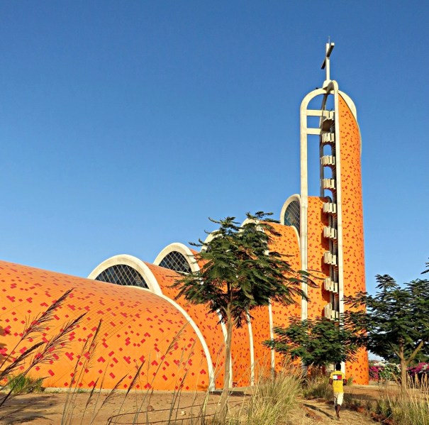 Com 800 lugares sentados, a igreja está fechada a Norte, para a proteger do Harmattan, vento quente e seco repleto de poeiras do deserto, e aberta a Oeste, para acolher os ventos frescos do oceano. A insólita planta sinuosa é constituída por três tipos de abóbadas, enquanto o campanário é uma verdadeira “torre do vento”, para aproveitar a energia eólica e o princípio de convecção, a fim de mitigar o calor através da ventilação e o refrescamento passivo dos ambientes interiores.