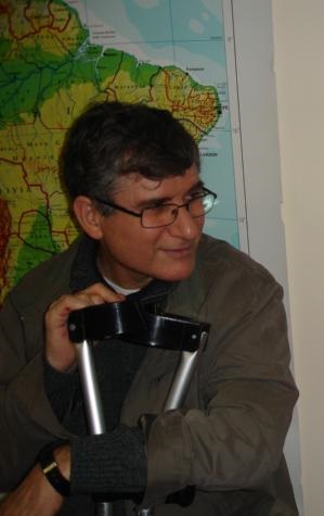Anch’io cerco di seguire il Signore come posso, passo dopo passo, giorno dopo giorno, zoppicando, aggrappato alle mie… “gemelle”, le stampelle, diventate mie inseparabili compagne. Al congedarmi della comunità cristiana a Lomé (Togo), dopo aver ricevuto i loro regali, ho scherzato dicendo che avevano dimenticato il dono più utile: una canna! La reazione è stata di disapprovazione generale, ma la sera un amico è venuto a portarmi un bastone artistico (un dono ricevuto in tempo dal presidente della repubblica, credo!). L’ho inaugurato durante il viaggio di ritorno in Portogallo. Mi dava… un’aria distinta! Ma il bastone si rifiutò di essere più di quello che era: un oggetto di stima, e sotto il mio peso si è spezzato al scendere dall’aereo facendo scalo in Marocco. L’ho abbandonato in un cestino all’aeroporto di Casablanca. Qualcuno ha visto in questo un segno di buon auspicio. Ma la verità è che ho dovuto ricorrere ad un bastone, questa volta più semplice, meno “nobile” ma più utile. Tuttavia anche questo è rimasto per strada, sostituito adesso dalle stampelle.