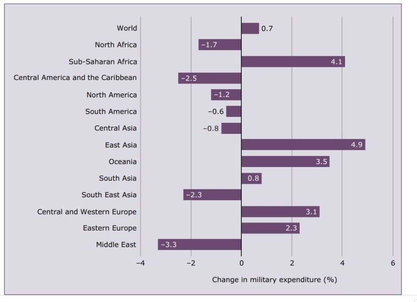 - In Africa le spese militari sono aumentate dell’1,2%, per un totale stimato di 39,7 miliardi di dollari.