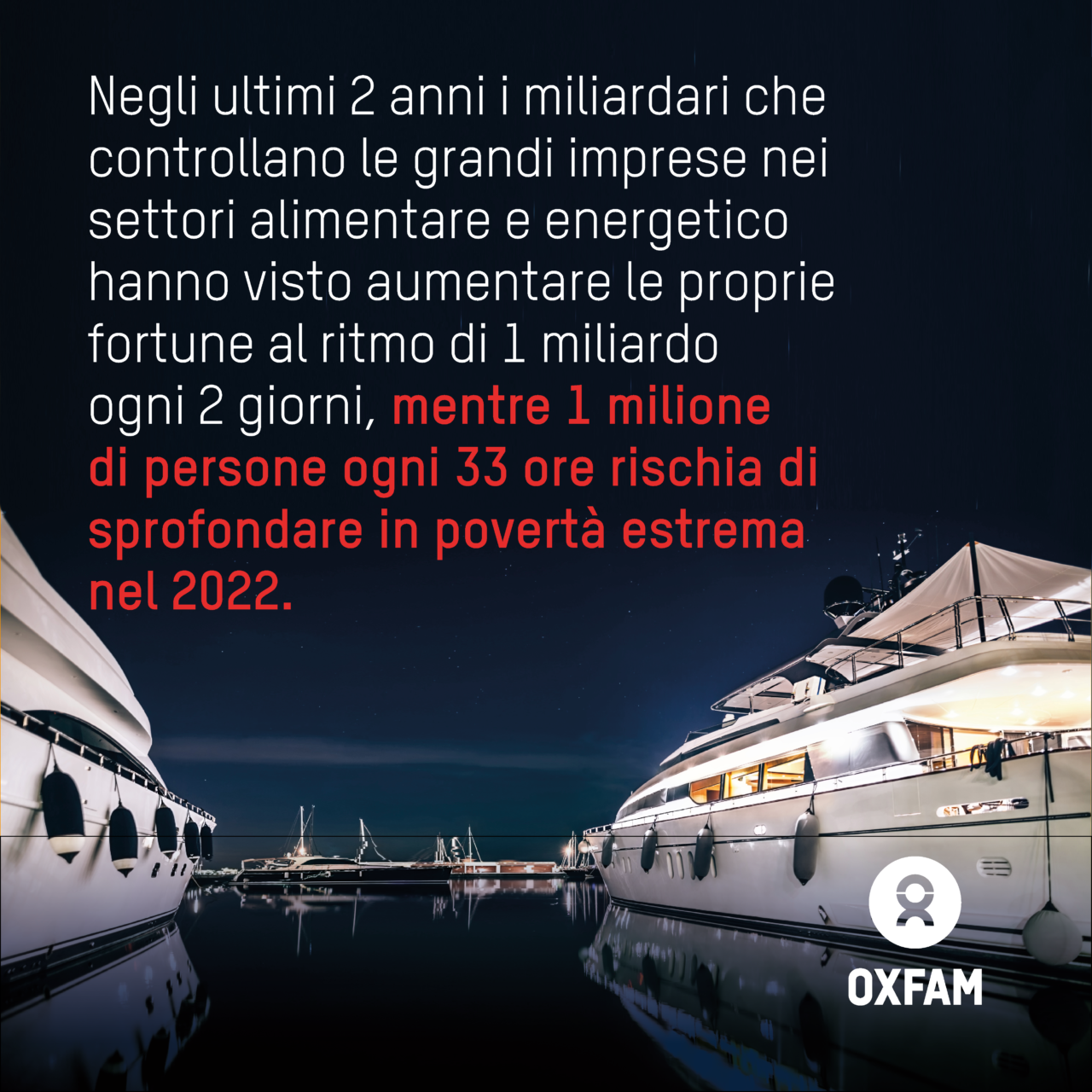 Negli ultimi 2 anni i miliardari che controllano le grandi imprese nei settori alimentare e energetico hanno visto aumentare le proprie fortune al ritmo di 1 miliardo ogni 2 giorni, mentre 1 milione di persone ogni 33 ore rischia di sprofondare in povertà estrema nel 2022