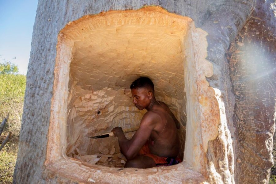 Chi è sopravvissuto si è reso conto di dover correre ai ripari per evitare altre emergenze idriche e umanitarie. È allora che la popolazione dell’altopiano notò una peculiarità dei baobab: la capacità dei loro tronchi di immagazzinare grandi quantità d’acqua. Quando un baobab viene colpito da un fulmine, il suo fusto si squarcia e la pioggia filtra nelle fenditure, piccole e grandi fessure, raccogliendosi nelle intercapedini. L’acqua non penetra nel legno duro e compatto dell’albero, che non marcisce. Rimane fresca e sorprendentemente pura