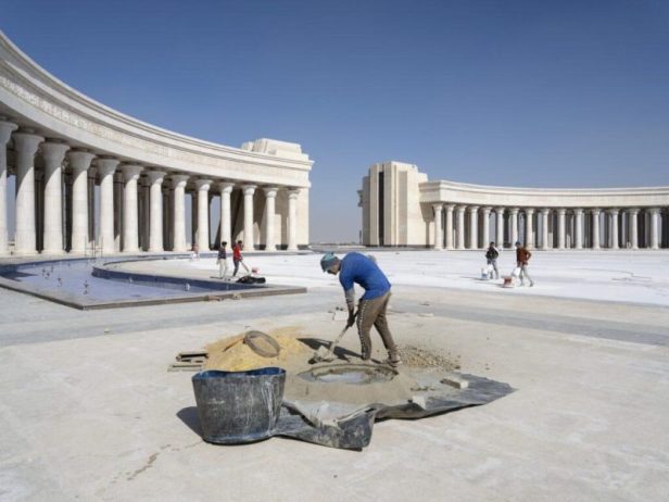 Le loro frasi a mezza voce, ma soprattutto gli sguardi disincantati, lasciano capire che nonostante la retorica del regime sono ben consapevoli che le eleganti palazzine e le piazze scenografiche che prendono forma tra la sabbia non saranno mai raggiungibili per loro.