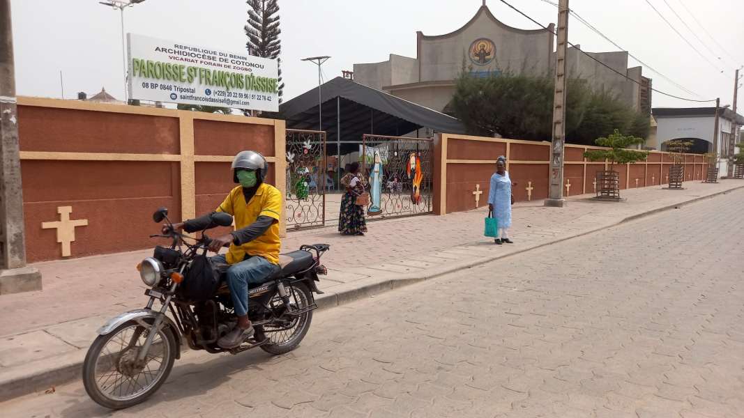 Vue partielle de la devanture de la Paroisse St François d’Assise de Cotonou le dimanche 28 janvier 2024/Juste Hlannon/LCA