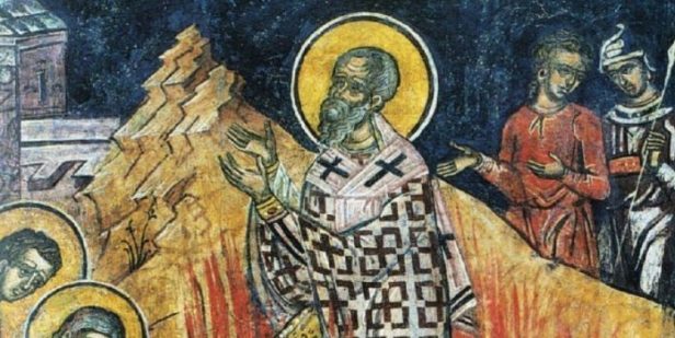Il fuoco si dispose a forma di arco a volta come la vela di una nave gonfiata dal vento e avvolse il corpo del martire come una parete. Il corpo stava al centro di essa, ma non sembrava carne che bruciasse, bensì pane cotto oppure oro e argento reso incadescente. E noi sentimmo tanta soavità di profumo, come di incenso o di qualche altro aroma prezioso.
