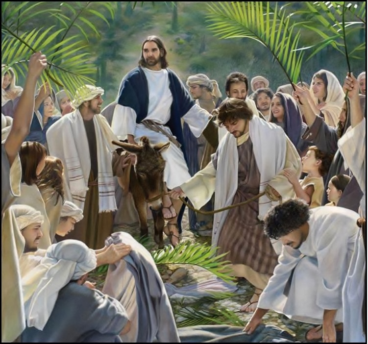 - Mi raccolgo, immaginando la via da Betania alla città santa e Gesù che, cavalcando l’asinello, attraverso il monte degli Ulivi, giunge in Gerusalemme.