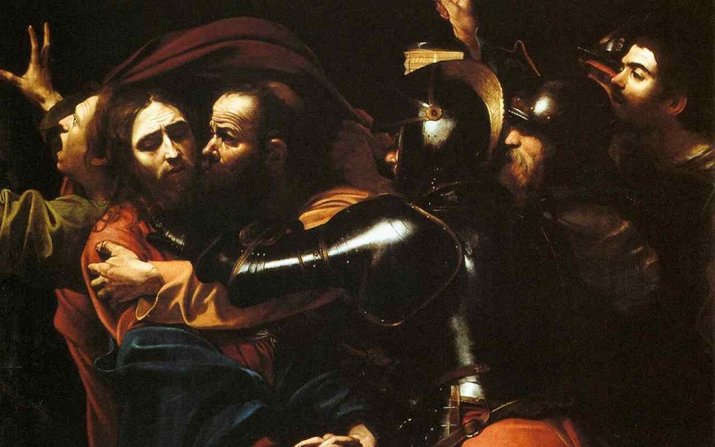 In quella notte fosca, nell’orto degli Ulivi, detto in aramaico Getsemani (“frantoio per olive”), s’avanza Giuda, il discepolo soprannominato “Iscariota”, forse “uomo di Kariot”, un villaggio meridionale della Terra Santa, oppure – secondo le varie ipotesi interpretative formulate dagli studiosi – deformazione del termine latino sicarius, con cui i Romani bollavano i ribelli al loro potere, o ancora ’ish-karja’, “uomo della falsità”, forse un soprannome negativo assegnatogli successivamente.
