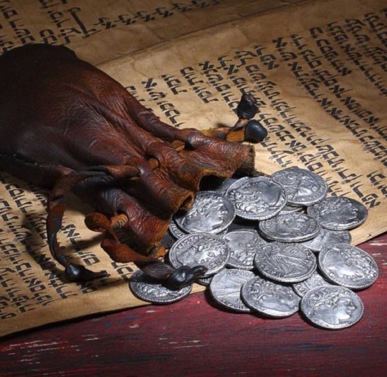 “In quel tempo, uno dei Dodici, chiamato Giuda Iscariòta, andò dai capi dei sacerdoti e disse: «Quanto volete darmi perché io ve lo consegni?». E quelli gli fissarono trenta monete d’argento”.