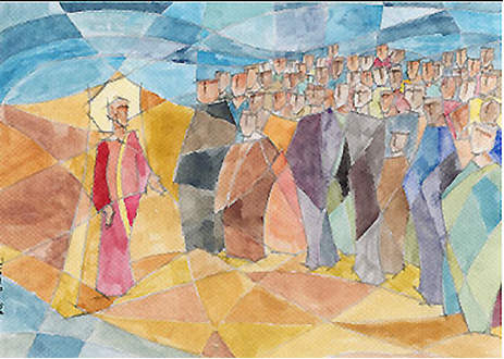 I discepoli, chiamati per essere con lui ed essere inviati, diventano una comunità che fa di lui il centro del proprio agire, pensare e parlare. Nel confronto con lui percepiscono il suo invito al deserto, dove, nella solitudine con lui, Parola fatta pane, troveranno il loro cibo.