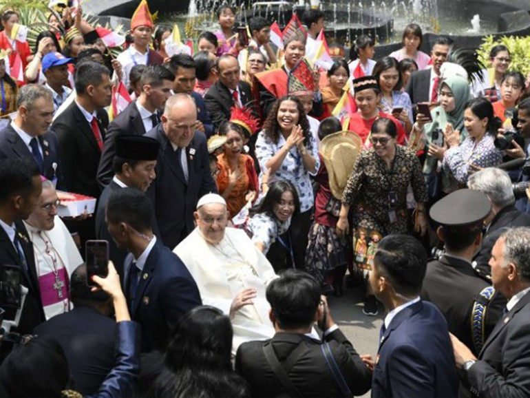 “Uniti nella diversità”. È il segreto del popolo indonesiano e nello stesso tempo l’indicazione di rotta al mondo per “contrastare l’estremismo e l’intolleranza”, “isolare le rigidità, i fondamentalismi e gli estremismi” e scongiurare conflitti e guerre, “alimentati anche dalle strumentalizzazioni religiose”. Nella prima tappa del suo viaggio apostolico in Asia e Oceania, il più lungo del pontificato, Papa Francesco ha tracciato un ritratto dell’Indonesia, arcipelago di 17.508 isole dove vive la maggioranza della popolazione musulmana mondiale, all’insegna dell’armonia delle differenze. Essere fratelli, ha spiegato durante l’incontro con il clero, citando la poetessa Wanda Szymborska, vuol dire essere “diversi come due gocce d’acqua”. “Come l’oceano è l’elemento naturale che unisce tutte le isole indonesiane, così il mutuo rispetto per le specifiche caratteristiche culturali, etniche, linguistiche e religiose di tutti i gruppi umani di cui si compone l’Indonesia è il tessuto connettivo indispensabile a rendere unito e fiero il popolo indonesiano”, l’omaggio del Papa ai “popoli diversi ma saldamente uniti in una sola nazione”, nel suo primo discorso pronunciato nel palazzo presidenziale di Giacarta e rivolto alle autorità. Al centro delle due giornate pubbliche indonesiane, la visita alla moschea Istiqlal, la più grande dell’Asia, dove si è svolto l’incontro interreligioso ed è stata firmata una Dichiarazione congiunta, cinque anni dopo l’analoga firma della Documento di Abu Dhabi sulla fratellanza umana, in cui si citano due gravi crisi – la disumanizzazione e il cambiamento climatico – e si evidenzia la responsabilità dei leader religiosi nella “promozione di una cultura di rispetto, dignità, compassione, riconciliazione e solidarietà fraterna” per “sconfiggere la cultura della violenza e dell’indifferenza che affligge il nostro mondo”. Subito prima, Papa Francesco e il grande imam, Nasaruddin Umar, hanno raggiunto insieme il “tunnel dell’amicizia”, che collega la cattedrale di Nostra Signora dell’assunzione e la Moschea Istiqlal, offrendo così un’immagine plastica di dialogo.