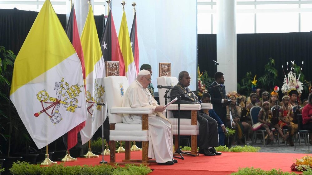 L’ “armonia delle differenze”, in un Paese che è un arcipelago con centinaia di isole, più di ottocento lingue, altrettanti gruppi etnici, e quindi ha “una straordinaria ricchezza culturale” che si unisce a quella di risorse naturali, è la sfida per i “valori dello spirito” in Papua Nuova Guinea. E le sue tante popolazioni possono dare “al mondo un segno di fraternità” se, consapevoli della “grande responsabilità” che deriva da questa ricchezza, si impegnano a “dar vita a uno sviluppo sostenibile ed equo, che promuova il benessere di tutti, nessuno escluso”, e a fermare “le violenze tribali”, che oltre a causare molte vittime, “non permettono di vivere in pace e ostacolano lo sviluppo”.