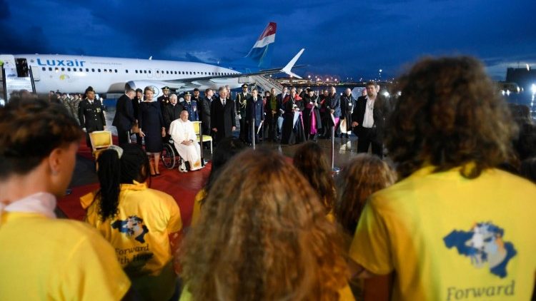 Sotto una pioggia battente, Francesco è arrivato alle 19.06 in Belgio, a Bruxelles, alla base aerea di Melsbroek. Conclusa all’aeroporto internazionale di Lussemburgo-Findel la prima tappa del suo viaggio al centro dell’Europa, dopo l’incontro con la comunità cattolica in cattedrale. Il viaggio proseguirà per tre giorni, fino a domenica 29 settembre