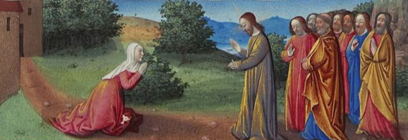 Arriva questa donna, che non a caso è una donna, e la cui figlioletta è posseduta da uno spirito impuro. Sembra che questo episodio smentisca tutto il discorso precedente di Gesù. Non è ciò che entra da fuori che fa male ed è questa bambina non ha fatto niente di male ed uno spirito impuro venuto da fuori la possiede. È l’apparente contrario del ragionamento di prima. È uno spirito impuro che la possiede e si è impadronito di lei e non la lascia più vivere. È visibile che il ragionamento di prima non va letto in termini morali, né in termini di intenzioni o di cuore, ma è più una faccenda di spirito. Noi non siamo un dentro od un fuori, un cuore puro, delle intenzioni pure, un’anima perbene e poi ci sarebbe il mondo cattivo, ma nemmeno il contrario ovvero il mondo è buonissimo e noi non valiamo niente. Noi siamo un territorio di ingressi e di uscite dello Spirito di Dio ed il problema non è cosa scelgo, ma quanto sono docile a questi passaggi.