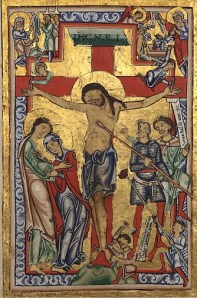 Standing by the cross of Jesus were his mother and his mother’s sister, Mary the wife of Clopas, and Mary of Magdala. When Jesus saw his mother and the disciple there whom he loved he said to his mother, “Woman, behold, your son.” Then he said to the disciple, “Behold, your mother.” And from that hour the disciple took her into his home. After this, aware that everything was now finished, in order that the Scripture might be fulfilled, Jesus said, “I thirst.” There was a vessel filled with common wine. So they put a sponge soaked in wine on a sprig of hyssop and put it up to his mouth. When Jesus had taken the wine, he said, “It is finished.” And bowing his head, he handed over the spirit. (Jn 19:25-30).