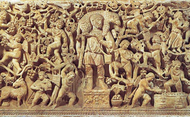 Nell’ambiente di cultura romana la raffigurazione di un pastore con un agnello sulle spalle, così come di scene genericamente pastorali, presa dall’immaginario greco, era assai diffusa e veniva riferita ad una pluralità di temi positivi, fra i quali il più significativo appare quello della filantropia (humanitas, in latino): Mercurio e l’eroe Ercole, conducevano pietosamente le anime dei defunti nell’aldilà, caricandosele sulle spalle come appunto un pastore porta un agnello. Queste immagini erano intese come personificazioni virtuose della bontà verso il genere umano. Per questo motivo la rappresentazione del pastore veniva utilizzata anche sui sarcofagi romani.