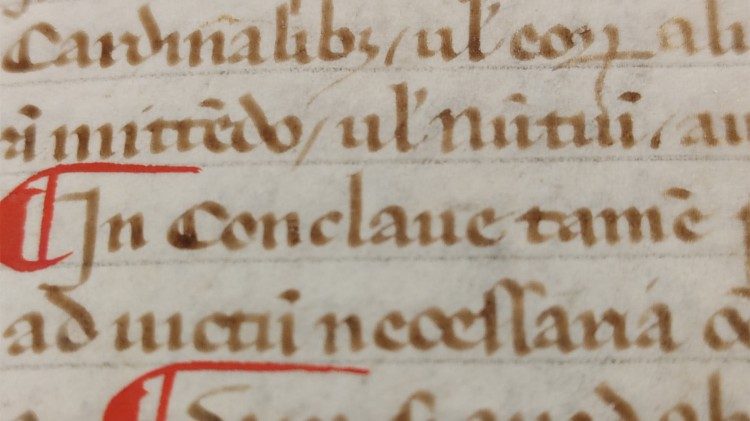A mostrarci una di queste pergamene è Marco Maiorino, Scriptor dell’Archivio Apostolico: “Il Conclave di Viterbo – spiega – si svolse alla fine di un secolo, il XIII, che in poco più di sessant’anni ha conosciuto dieci anni di sede vacante”. Dopo la morte di Clemente IV avvenuta il 29 novembre 1268, 20 cardinali elettori si riunirono nella città laziale, ma “l’assemblea fu ben presto bloccata dalla contrapposizione fra due fazioni, quella francese, formata perlopiù da cardinali creati dal papa francese Urbano IV, e quella italiana che aveva i numeri per non far raggiungere i 2/3 al candidato del partito avversario”.