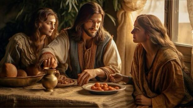 Marta è la sua ospite: sappiamo dalla tradizione che Gesù si trova nella casa di Lazzaro, Maria e Marta, ma il Vangelo ci dice chiaramente che è Marta ad averlo accolto. Non si fa menzione di Lazzaro in questo brano.