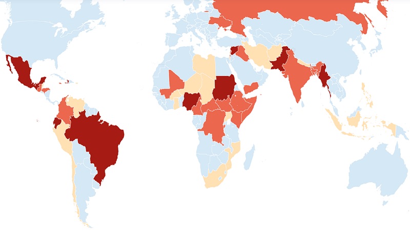 Tra i primi dieci paesi in graduatoria, sei sono considerati stabili nella gravità della loro situazione e hanno mantenuto la loro posizione. La Palestina è al primo posto. Myanmar, Siria, Messico, Nigeria e Sudan si collocano rispettivamente al secondo, terzo, quarto, quinto e ottavo posto.