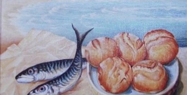 Gesù ordinò ai discepoli che facessero sedere la folla nell’erba. Quando tutti furono adagiati in tanti circoli, ciascuno di una cinquantina di persone, a questo punto, Gesù presi i cinque pani e i due pesci, alzò gli occhi al cielo, benedisse il tutto e spezzò i pani distribuendoli ai discepoli perché li spartissero tra la folla insieme ai pesci. I discepoli vanno verso la gente e distribuiscono il cibo ricevuto dal Maestro. Servono quelli che sono più vicini, poi gli altri e i loro panieri restano sempre pieni. Hanno già servito venti, cinquanta, cento persone…, e hanno ancora tanti pani e pesci quanti ne avevano all’inizio. E’ davvero meraviglioso: riescono a nutrire centinaia di uomini, di donne e bambini senza difficoltà. Essi credono in Gesù e sono entusiasti di lui. Assieme al loro Maestro, i futuri pescatori di uomini moltiplicano i pani e i pesci. Nutrono il popolo di Dio, il popolo affamato di verità, così affamato delle cose spirituali da seguire il maestro fino a dimenticare di tornare a casa a rifocillarsi. Il popolo ha fame del Signore, del suo messaggio, della sua presenza. Tutta la gestualità di Gesù è un’anticipazione dell’Eucaristia. Poi Gesù consigliò loro di raccogliere gli avanzi perché nulla andasse perduto.